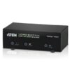 Wyświetlanie obrazu z 2 komputerów na jednym monitorze lub projektorze. Szybkie i łatwe przełączanie źródeł VGA/audio za pomocą przycisków na panelu przednim, RS-232 lub pilota na podczerwień. Bardzo wysoka jakość grafiki — rozdzielczość do 1920 x 1440. Video DynaSync™ – specjalna technologia ATEN, która eliminuje problemy z wyświetlaniem podczas rozruchu i optymalizuje rozdzielczość podczas przełączania między portami