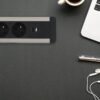 Minimalna głębokość zabudowy – 40 mm. Minimalistyczny wygląd. Listwa zajmuje jak najmniej miejsca pod blatem, zwłaszcza tam, gdzie znajdują się np. szuflady czy szafki. Wejście kabla jest tak usytuowane, że nie zajmuje dodatkowej przestrzeni pod spodem. Głębokość montażowa jest podobna jak w przypadku standardowego blatu kuchennego 40mm.