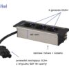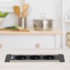 Minimalna głębokość zabudowy – 40 mm. Minimalistyczny wygląd. Listwa zajmuje jak najmniej miejsca pod blatem, zwłaszcza tam, gdzie znajdują się np. szuflady czy szafki. Wejście kabla jest tak usytuowane, że nie zajmuje dodatkowej przestrzeni pod spodem. Głębokość montażowa jest podobna jak w przypadku standardowego blatu kuchennego 40mm.