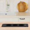 Minimalna głębokość zabudowy – 40 mm. Minimalistyczny wygląd. Listwa zajmuje jak najmniej miejsca pod blatem, zwłaszcza tam, gdzie znajdują się np. szuflady czy szafki. Wejście kabla jest tak usytuowane, że nie zajmuje dodatkowej przestrzeni pod spodem. Głębokość montażowa jest podobna jak w przypadku standardowego blatu kuchennego 40mm.