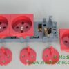 Gniazdo elektryczne potrójne czerwone (kodowane) w standardzie Mosaic, o wymiarach 135x45mm. Umożliwia instalatorowi łatwy oraz modułowy montaż.