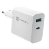 Chcesz uzupełnić energię nie 1, a 2 urządzeń jednocześnie? Z Natec Ribera GaN zrobisz to z łatwością. Naszą ładowarkę wyposażyliśmy w dwa porty USB (USB typu A oraz USB-C) o łącznej mocy 45 W. Co więcej, dzięki wsparciu dla technologii szybkiego ładowania (Power Delivery 3.0, Quick Charge 3.0, Samsung AFC, Huawei FCP/SCP) zrobisz to jeszcze szybciej, niż dotychczas, a to jeszcze nie wszystko. Natec Ribera GaN korzysta z protokołu PPS – zupełnie nowego schematu ładowania, który pozwala Ci ładować różne urządzenia bez względu na markę. W automatyczny sposób reguluje on parametry ładowania dostosowując je do podłączonego sprzętu. Duża oszczędność czasu w porównaniu do klasycznych rozwiązań? Z Natec Ribera GaN możesz na nią liczyć.