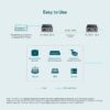 Konwerter to urządzenie wolnostojące, ale może być także montowanie w szafie rack TP-Link, aby udostępniać funkcję automatycznego krosowania MDI/MDI-X na porcie TX, na którym szybkości połączeń są automatyczne negocjowane w trybie dupleksu.