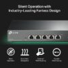 Metalowa obudowa: Wytrzymała obudowa, możliwość montażu na biurku lub na ścianie i konstrukcja ułatwiająca odprowadzanie ciepła to cechy, które czynią przełącznik TL-SX105 uniwersalnym urządzeniem.