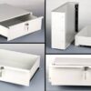 Szuflada jest wykonana z walcowanej na zimno stali, malowanej proszkowo na kolor czarny. Posiada zamknięcie na klucz.
